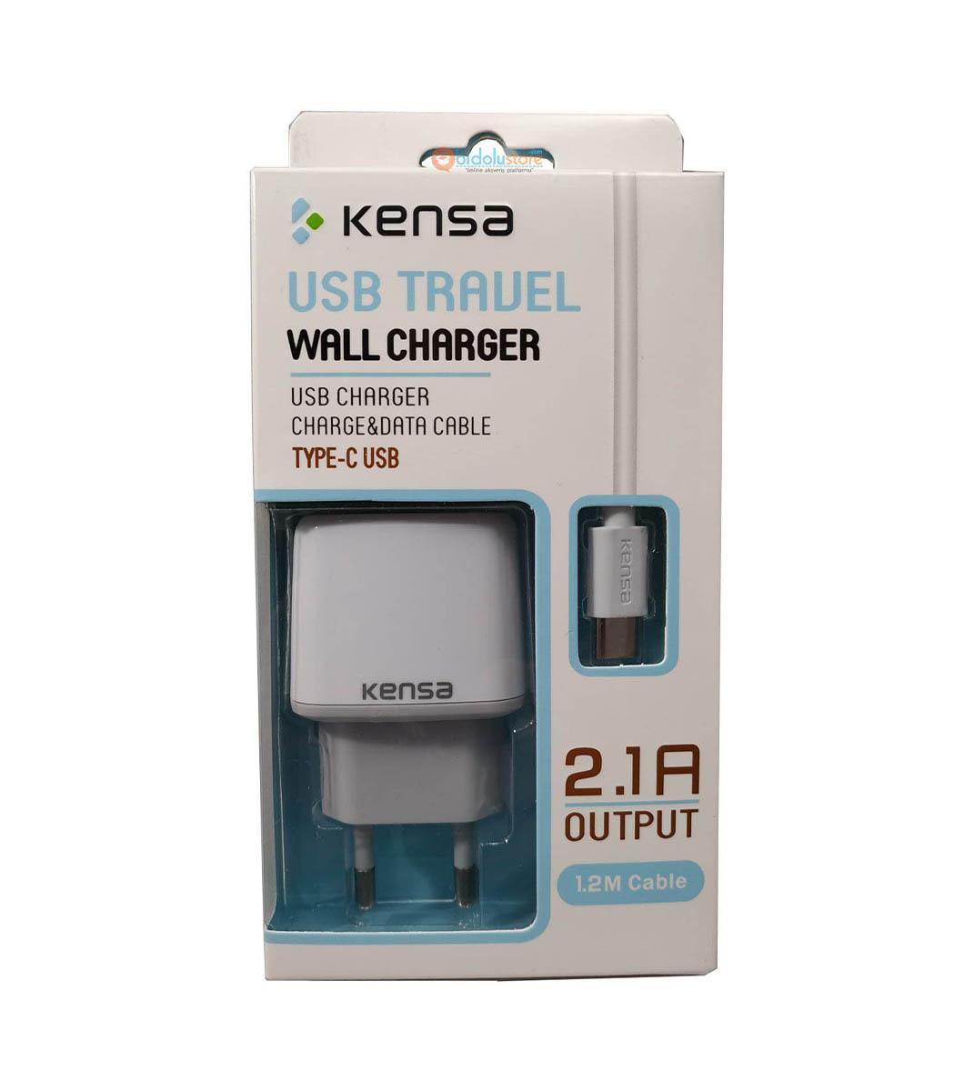 Kensa 1.2 Metre Type-C Kablolu 2.1 Amper Hızlı Ev Şarj Cihazı Seti